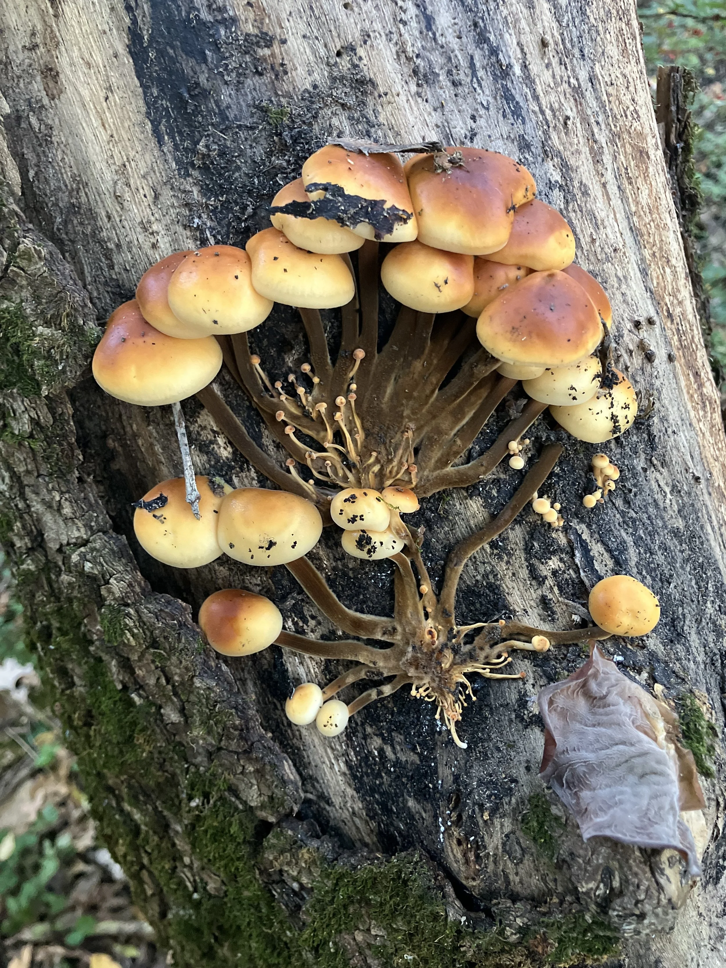 Wild Golden Enoki growing on decaying log